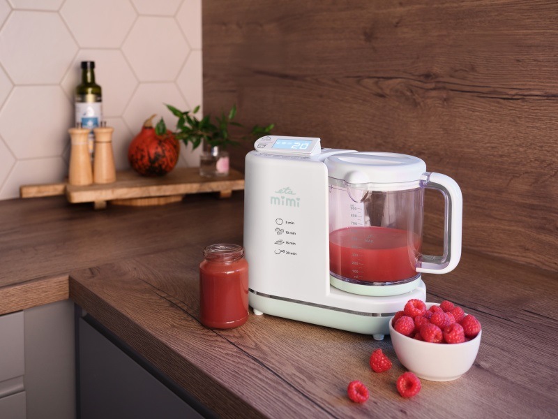 Цей зручний та універсальний прилад можна використовувати для приготування на парі фруктів, овочів та м’яса, підігріву молока та продуктів, подрібнення для приготування пюре, розморожування, підтримки температури їжі та дитячих пляшечок, а також стерилізації пустушок та дитячих пляшечок. ETA Mimi також оснащена автоматичною системою видалення накипу.